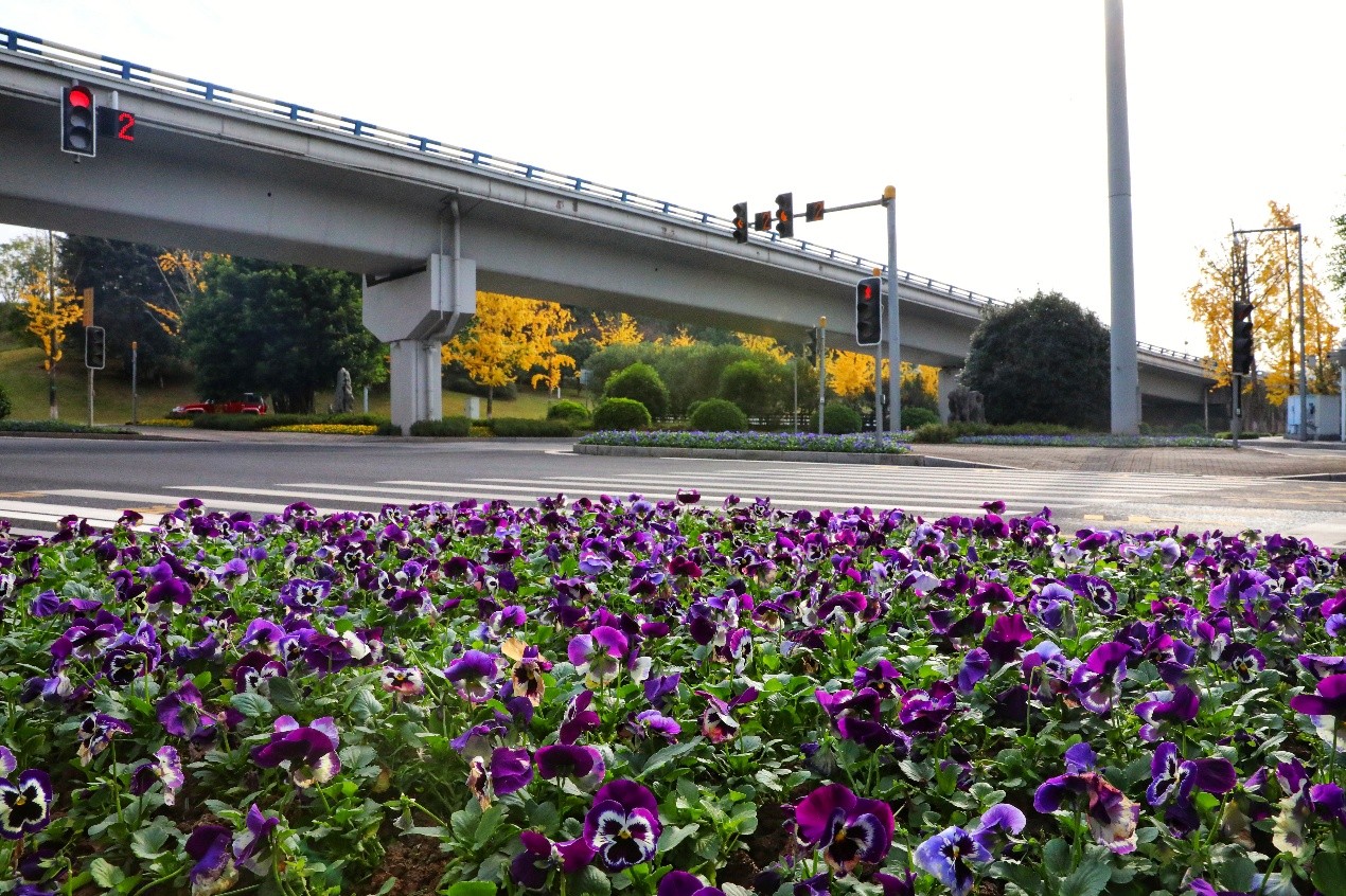 在国博立交、高义口边坡、悦来立交、国博大道、滨江路、会议中心等区域,共布置了224个花箱,部分重要通道还布置了花境,五彩斑斓的花朵在寒冷的冬日里争奇斗艳。